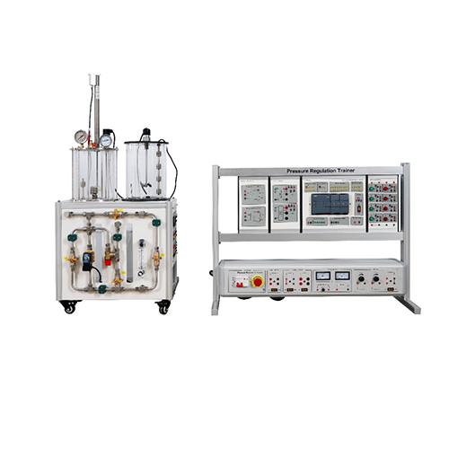 La mesa didáctica para el estudio del proceso de regulación de presión permite: el estudio de los principios de regulación, la calibración y parametrización de reguladores, convertidores, transmisores y válvulas. Estudio de la regulación de lazo, regulación de tipo todo o nada, regulación de tipo P/PI/PID, retardo con temperatura variable. Cálculo mediante software de monitoreo y mesa de monitoreo de adquisición de datos.